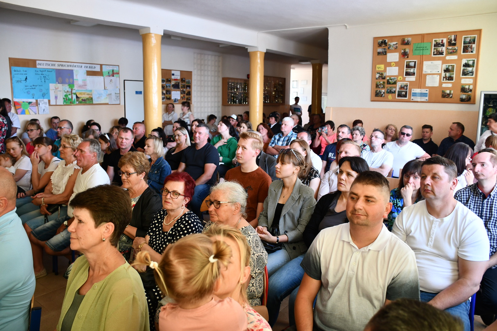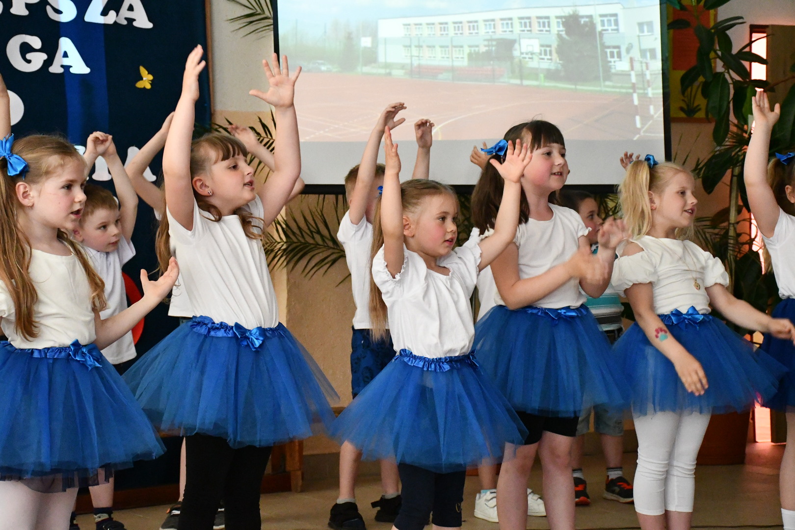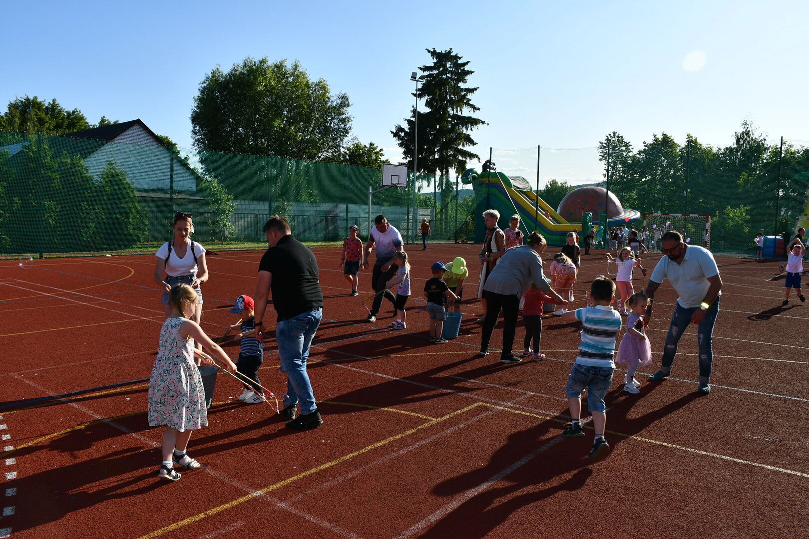 Po części oficjalnej zebrani goście wraz z całą społecznością szkolną udali się na poczęstunek przygotowany przez KGW. Na najmłodszych czekały atrakcje przygotowane przez Krainę Szczęścia, dmuchany plac zabaw oraz zabawy z animatorami.
