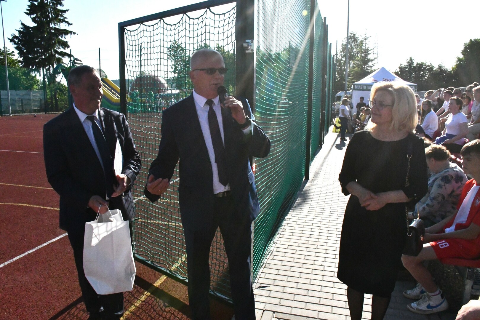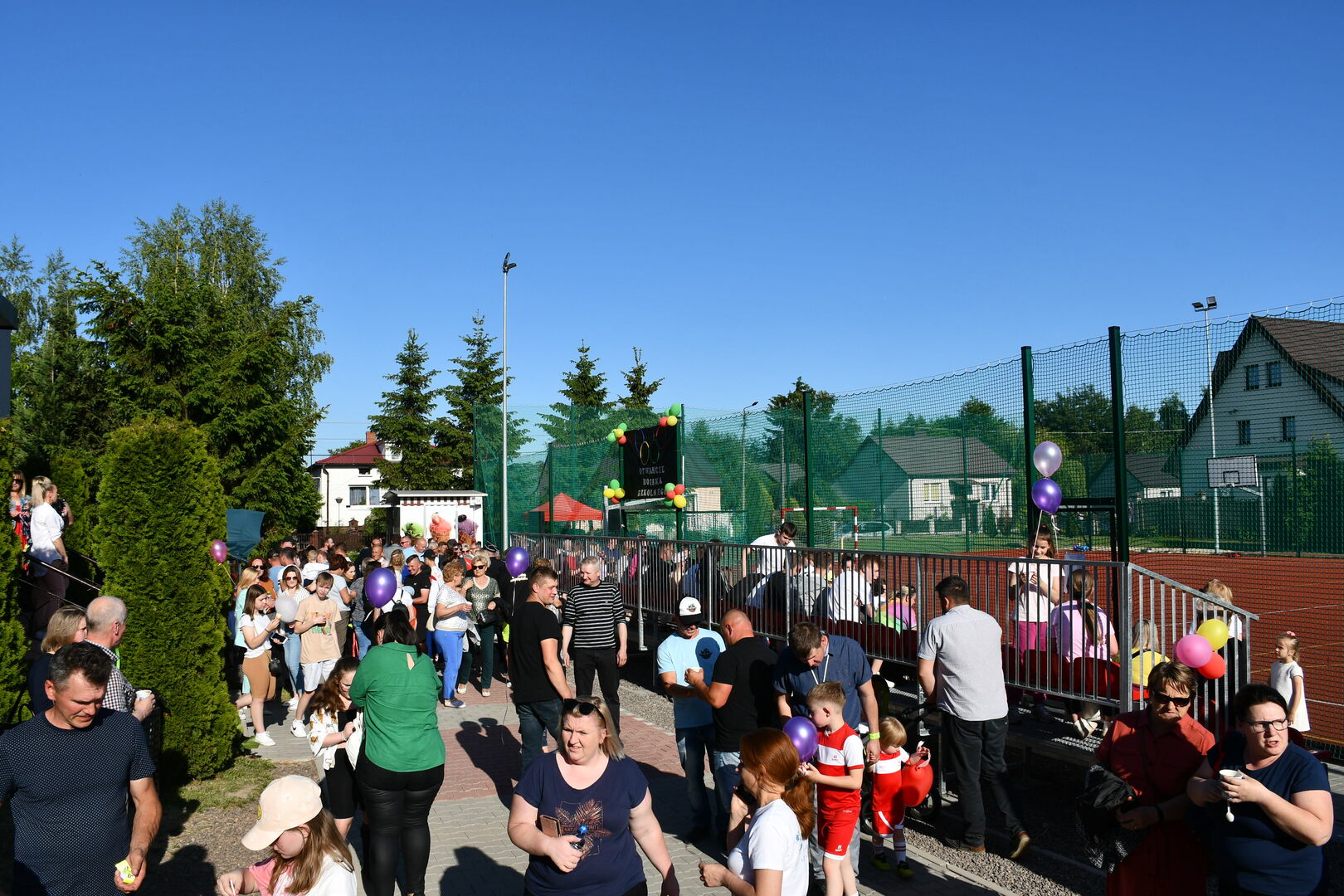 Otwarcie boiska połączone było z festynem rodzinnym, podczas którego promowane były działania ukierunkowane na przeciwdziałanie zjawiskom: przemocy domowej, przestępstw na szkodę małoletnich, cyberprzestępczości. Na stoisku profilaktycznym mieszkańcy mieli możliwość zapoznać się z ofertami profilaktycznymi, porozmawiać z członkami Gminnej Komisji Rozwiazywania Problemów Alkoholowych, Zespołu Interdyscyplinarnego ds. przeciwdziałania przemocy.