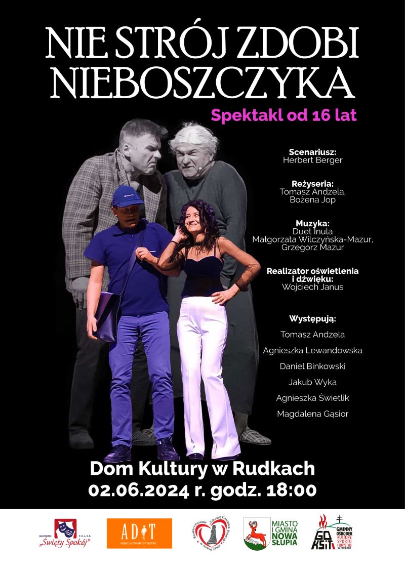 Amatorski Teatr "Święty Spokój" zaprasza na spektakl. 2 czerwca, godz. 18.00. Dom Kultury w Rudkach.
