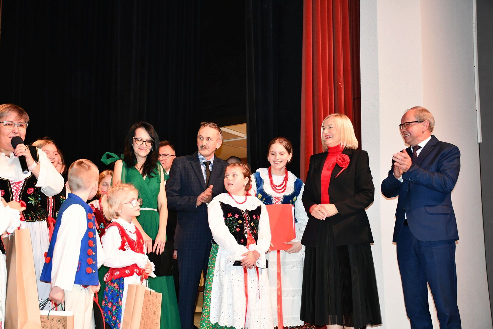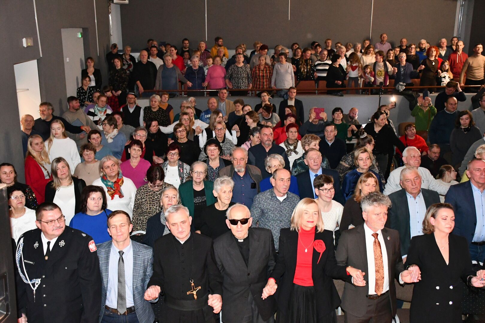 Kulminacją części muzycznej był wejściem na scenę Zespołu Pieśni i Tańca „Małe Hajduki”, który oczarował publiczność barwnymi strojami, energią i szacunkiem do polskiej tradycji. Na zakończenie wszyscy wykonawcy wspólnie zaśpiewali „Barkę”, tworząc pełną emocji, jedności i symbolicznego przesłania chwilę.