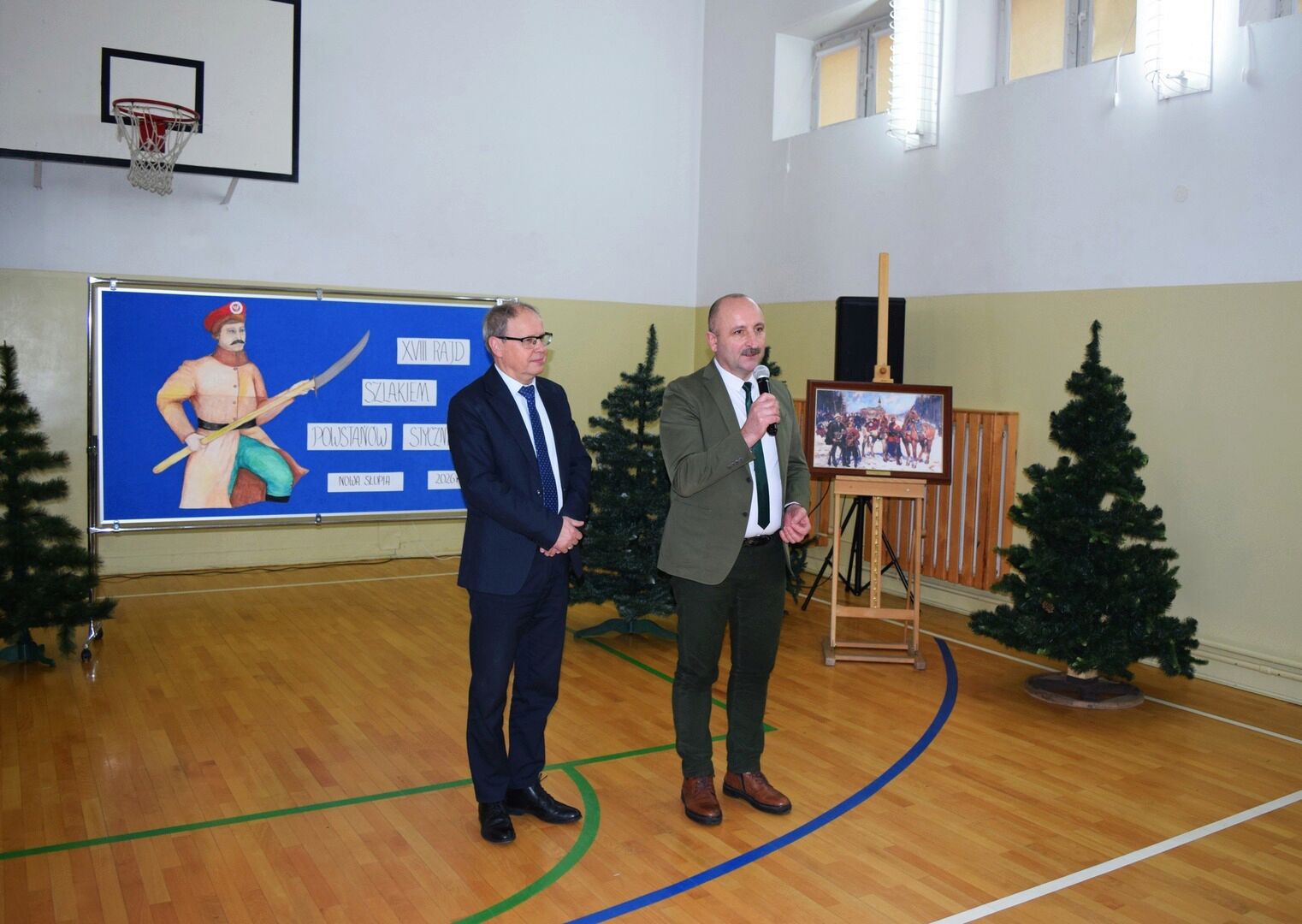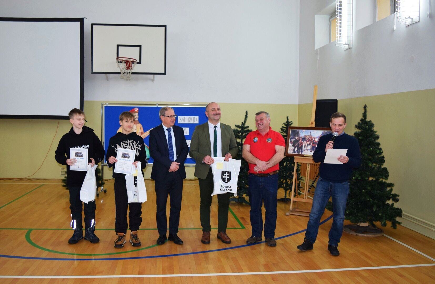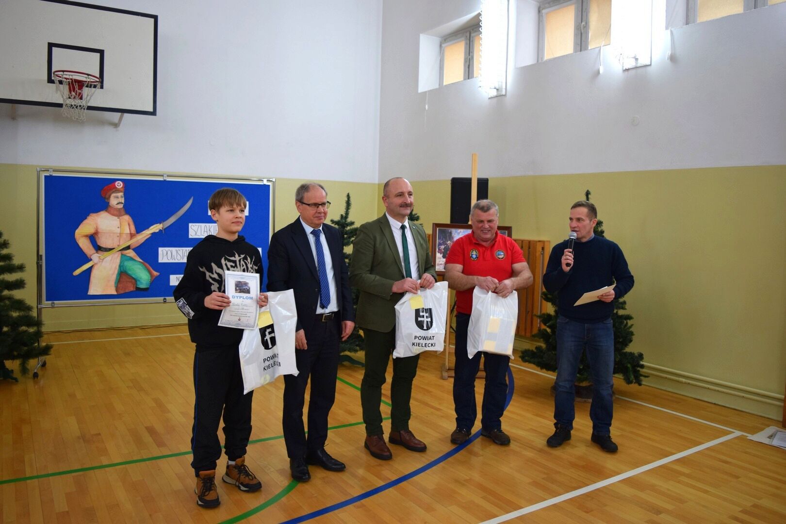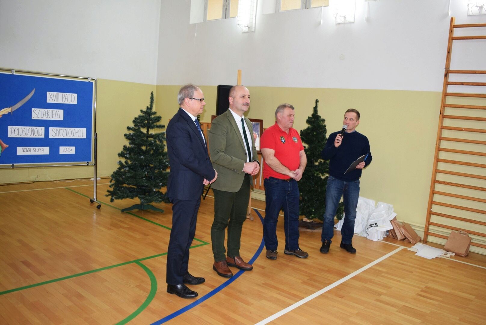 Wszystkich zebranych powitała dyrektor szkoły Renata Storzysz wraz z Piotrem Sepioło – pomysłodawcą i jednym z przewodników Rajdu. Podsumowaniu towarzyszył również konkurs historyczny z wiedzy o Powstaniu Styczniowym. Czas oczekiwania na ogłoszenie wyników umilił zebranym występ uczniów klas VI, VII, VIII przygotowanych przez Pana Jacka Górę. Dodatkową lekcją historii była prezentacja Marka Sieńka - nauczyciela historii, poświęcona zrywowi niepodległościowemu z 1863 roku, który szerokim echem wybrzmiał także w Górach Świętokrzyskich. Z kolejną prezentacją wystąpił Pan Janusz Kędracki – redaktor, honorowy Przewodnik Świętokrzyski, pasjonat i wielki znawca regionu. W kilkunastominutowym wystąpieniu zaprezentował wiele ciekawych informacji związanych ze zrywem z połowy XIX wieku.