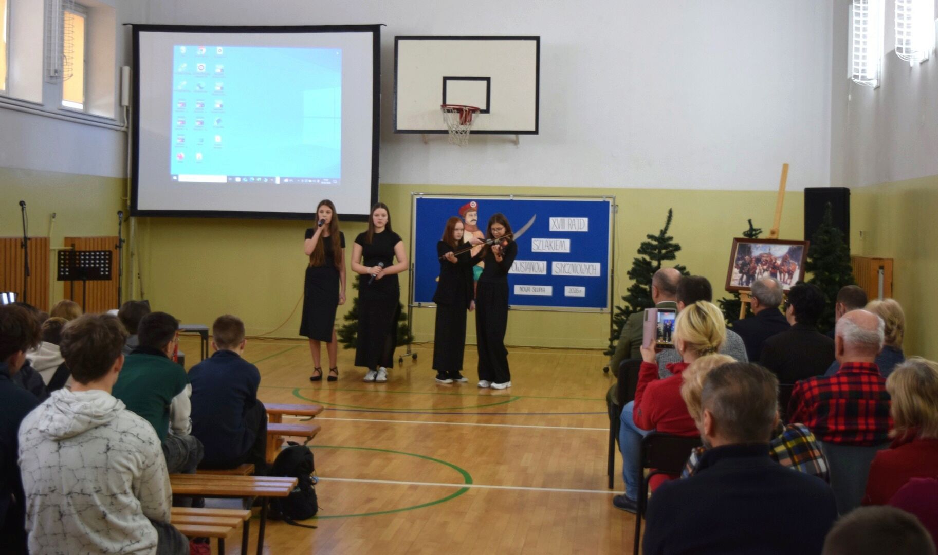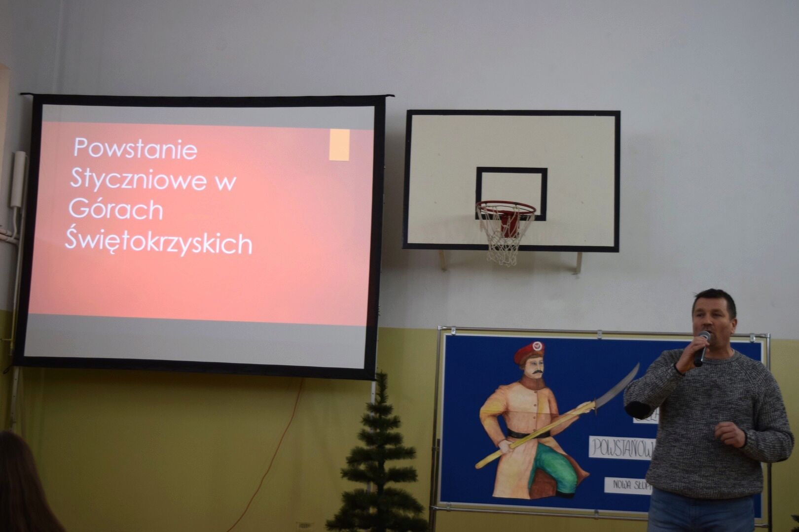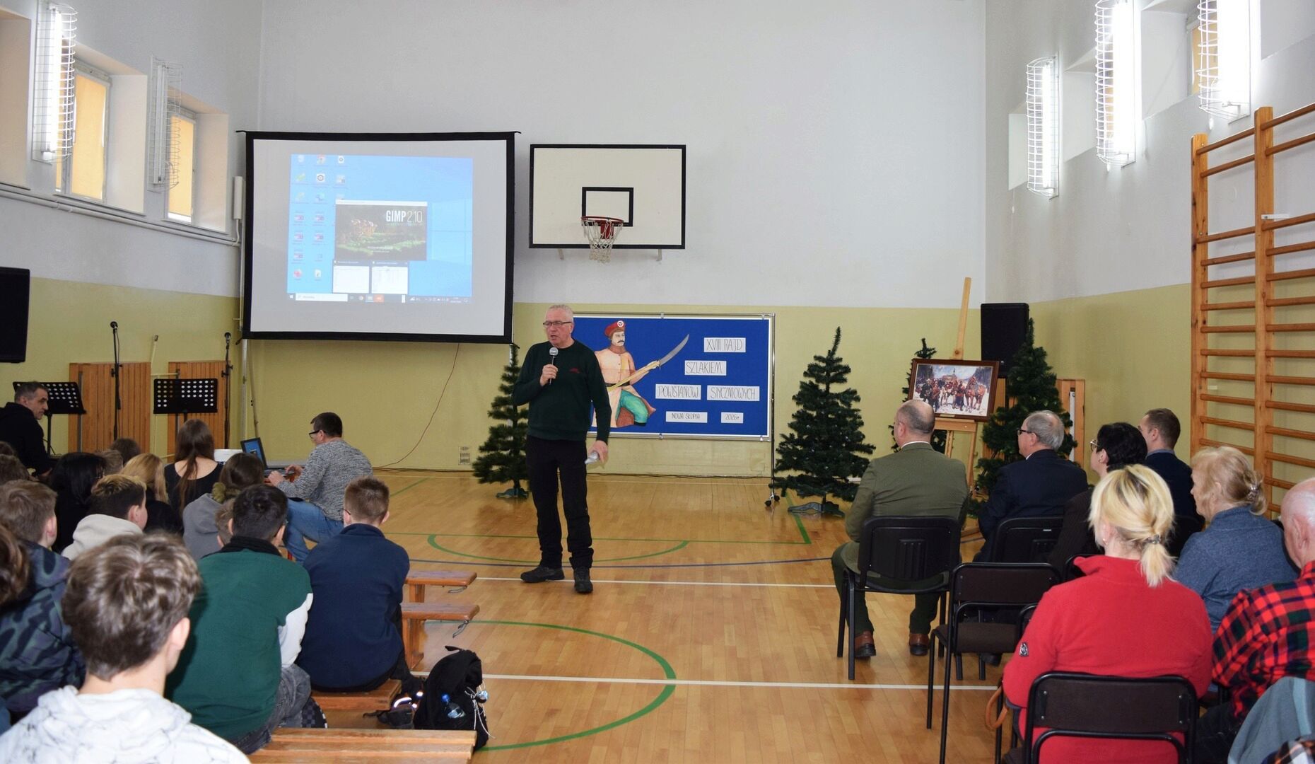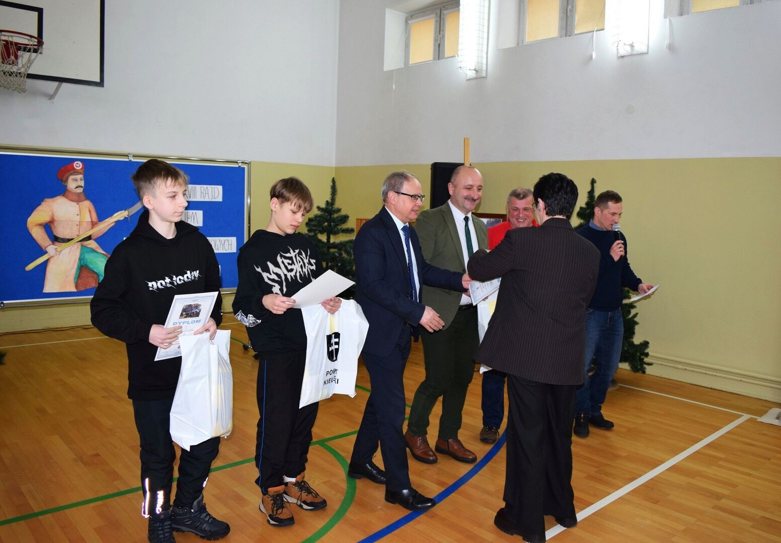 Wszystkich zebranych powitała dyrektor szkoły Renata Storzysz wraz z Piotrem Sepioło – pomysłodawcą i jednym z przewodników Rajdu. Podsumowaniu towarzyszył również konkurs historyczny z wiedzy o Powstaniu Styczniowym. Czas oczekiwania na ogłoszenie wyników umilił zebranym występ uczniów klas VI, VII, VIII przygotowanych przez Pana Jacka Górę. Dodatkową lekcją historii była prezentacja Marka Sieńka - nauczyciela historii, poświęcona zrywowi niepodległościowemu z 1863 roku, który szerokim echem wybrzmiał także w Górach Świętokrzyskich. Z kolejną prezentacją wystąpił Pan Janusz Kędracki – redaktor, honorowy Przewodnik Świętokrzyski, pasjonat i wielki znawca regionu. W kilkunastominutowym wystąpieniu zaprezentował wiele ciekawych informacji związanych ze zrywem z połowy XIX wieku.