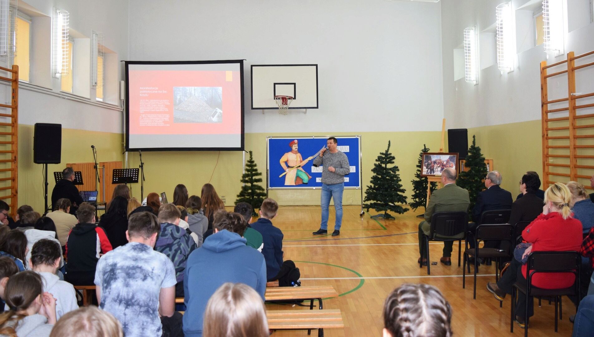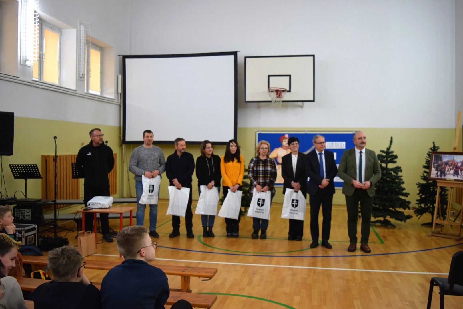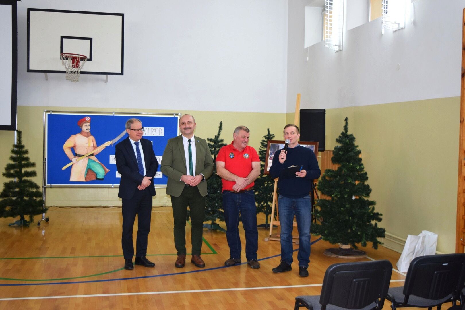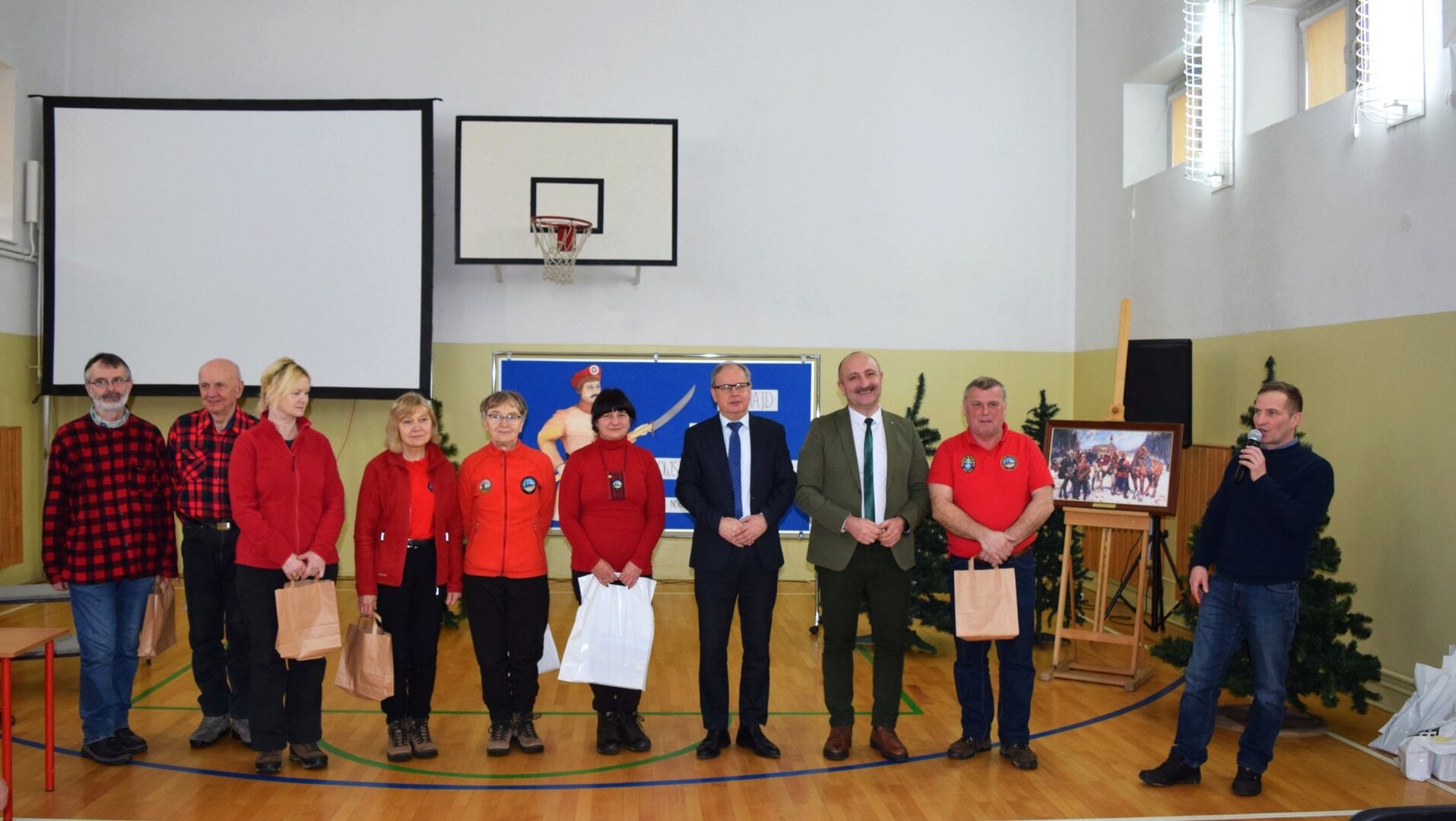 Wszystkich zebranych powitała dyrektor szkoły Renata Storzysz wraz z Piotrem Sepioło – pomysłodawcą i jednym z przewodników Rajdu. Podsumowaniu towarzyszył również konkurs historyczny z wiedzy o Powstaniu Styczniowym. Czas oczekiwania na ogłoszenie wyników umilił zebranym występ uczniów klas VI, VII, VIII przygotowanych przez Pana Jacka Górę. Dodatkową lekcją historii była prezentacja Marka Sieńka - nauczyciela historii, poświęcona zrywowi niepodległościowemu z 1863 roku, który szerokim echem wybrzmiał także w Górach Świętokrzyskich. Z kolejną prezentacją wystąpił Pan Janusz Kędracki – redaktor, honorowy Przewodnik Świętokrzyski, pasjonat i wielki znawca regionu. W kilkunastominutowym wystąpieniu zaprezentował wiele ciekawych informacji związanych ze zrywem z połowy XIX wieku.